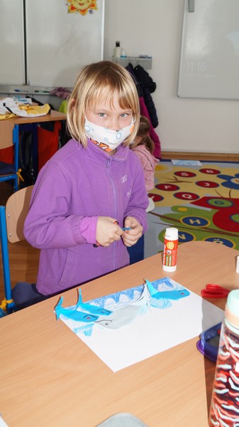 V praktických činnostech jsme se "vyřádili". Pod rukama nám vznikla celá hejna velryb.