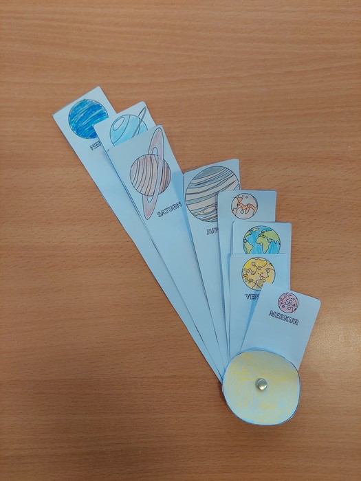 Na našem projektu Vesmír jsme pracovali několik měsíců a během té doby jsme podnikli cestu napříč sluneční soustavou. Vytvořili jsme výukovou pomůcku k planetám, která nám pomohla lépe pochopit jejich uspořádání. Sestavili jsme lapbook s nejdůležitějšími informacemi o vesmíru, který nám sloužil jako přehledný souhrn získaných poznatků.