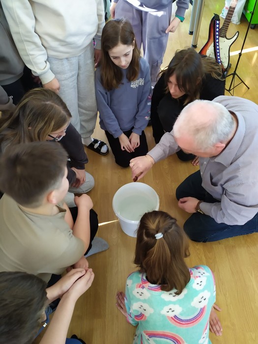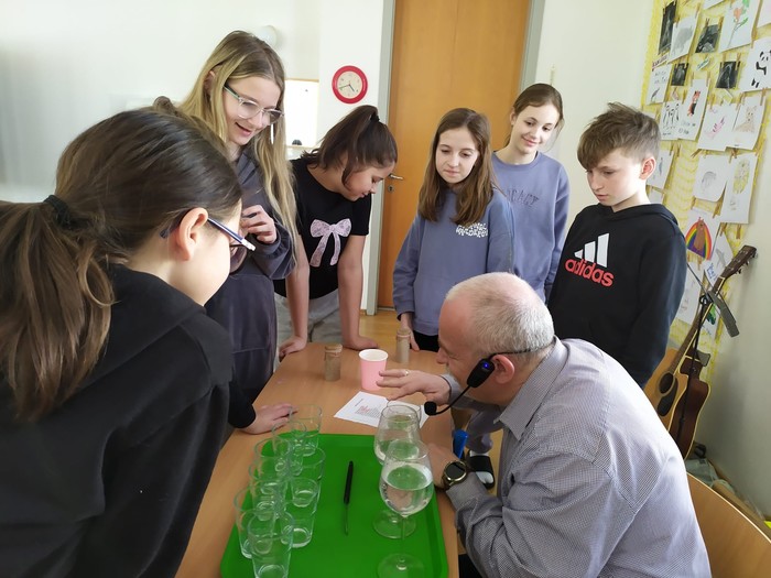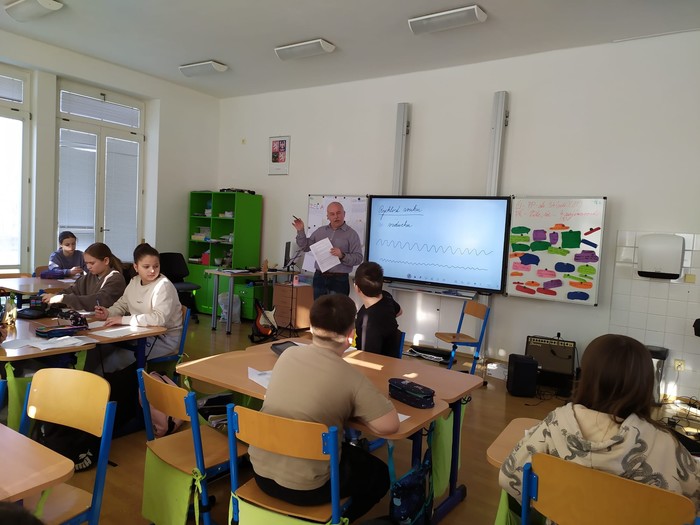 Pan učitel Pavel Pospíšil pojal čtvrtý projektový den originálně – zaměřil se na zvuk a hudbu, protože právě vzduch je nezbytný pro šíření zvuku. Bez něj by hudba ani obyčejné slovo nemohly existovat. A tak se žáci nejen bavili, ale i prakticky objevovali, jak zvuk funguje.