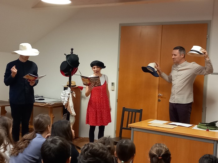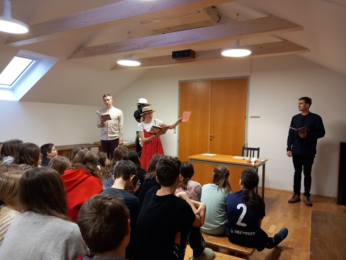 Herci Slováckého divadla připravili pro žáky naší školy nevšední zážitek v podobě scénického čtení. Tato aktivita měla za cíl přiblížit dětem kouzlo literatury a divadelního umění, a to v netradiční formě. Herci nejen přečetli vybrané texty o událostech roku 1918, ale zároveň je oživili hereckými výkony, gesty a emocemi, což přitáhlo pozornost žáků a umožnilo jim lépe porozumět obsahu literárního díla.
