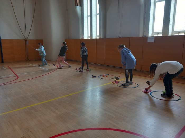Víte, jak správně uchopit golfovou hůl, jak se v golfu počítají body, nebo jaký je rozdíl mezi různými typy golfových holí? Tohle všechno a mnohé další se dnes dozvěděli naši žáci v rámci ukázky golfu, která probíhala v naší tělocvičně pod vedením zkušeného instruktora a hráče golfu. Žáci si golf samozřejmě také vyzkoušeli, je tudíž možné, že se mezi námi po dnešním dni nachází budoucí golfista nebo golfistka :-)