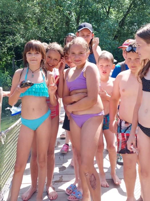 Společně s třeťáky navštívili želvy u paní učitelky Andrýskové – právě ty, které jsme si na konci školního roku zapůjčili do školy k výuce o klimatu. Téma želv nás provázelo i při koupání na Živé vodě, kde děti pátraly po uprchlých želvách. Dvě z nich se jim podařilo odlovit a vrátit do výběhu. Výlet krásně propojil zážitky z výuky s letní odměnou – den jsme zakončili zmrzlinou!