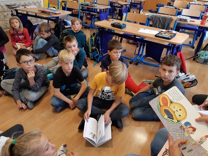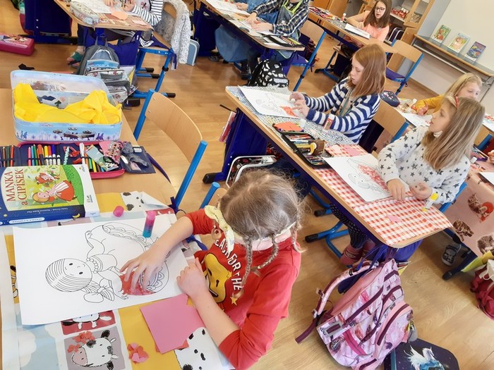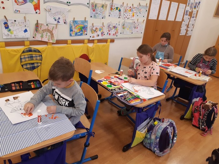 Máme za sebou první pololetí školního roku a s ním i polovinu naší celoroční hry „Světem knížek“. Třeťáci se během ní seznámili s tvorbou již pěti známých českých ilustrátorů. Vědí něco o životě a díle Josefa Lady, Heleny Zmatlíkové, Ondřeje Sekory, Zdeňka Smetany a Radka Pilaře. Na vlastní kůži si také vyzkoušeli, jaké to je si takovou ilustraci vytvořit. Vypůjčili si nápady typické pro jednotlivé autory a různými výtvarnými technikami je dotvořili dle své fantazie. Jejich herní plány se plní odznáčky a my se těšíme, čím nás ještě překvapí.