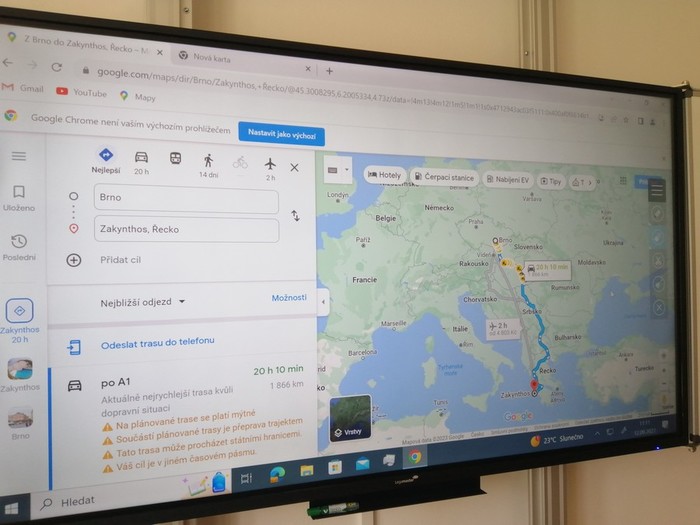 Zahájili jsme celoroční motivační hru Cestou, necestou poznáváme svět. První úkolem bylo cestování o prázdninách. Vzpomínali jsme na prázdniny v krásných prezentacích z dovelených, výletů i táborů, cestovali jsme v různých zemích Evropy i po České republice. Dozvěděli jsme se spoustu zajímavostí, sdíleli si zážitky a fotografie. Cestovali jsme i v matematice, vyhledávali jsme trasy pomocí aplikace Google mapy, počítali vzdálenosti a finanční náklady na cestu do světa.