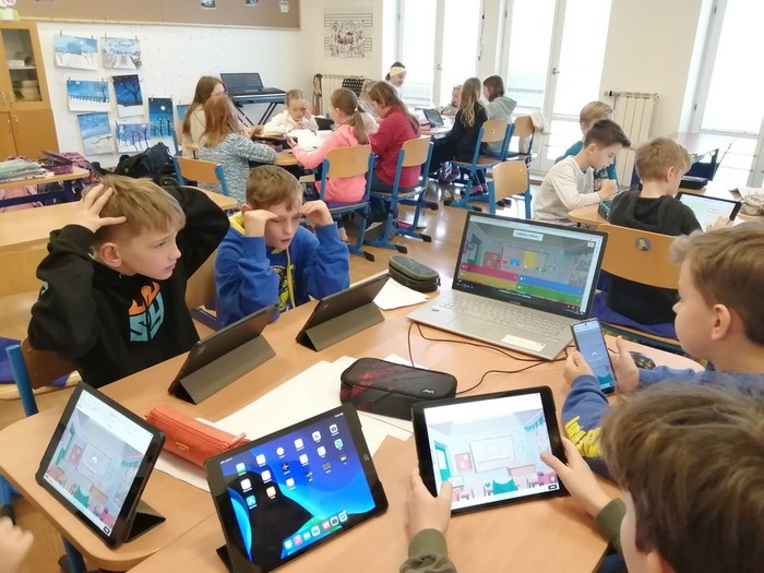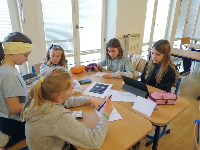 Při výuce využíváme moderní digitální technologie. Žáci naší třídy předvedli návštěvě ředitelů ze základních škol z okolí Brna, jak umí pracovat s Ipady. Ve skupinách předvedli plnění úkolů v aplikaci LearningApps, řešení kvízu Kahoot, vyhledávání různých informací - počty obyvatel evropských zemí, zaokrouhlování počtu, nejvyšší sopky Evropy, nadmořské výšky, datum poslední aktivity sopky, řazení od nejvyšší po nejmenší....
