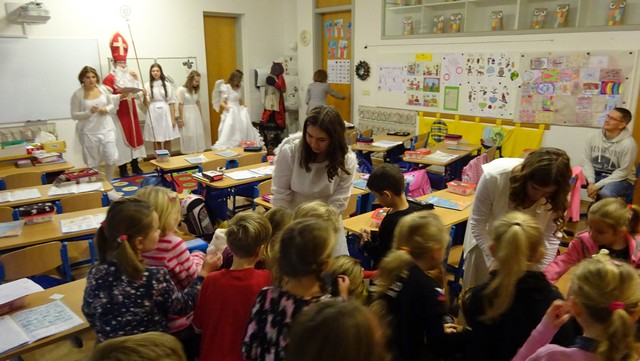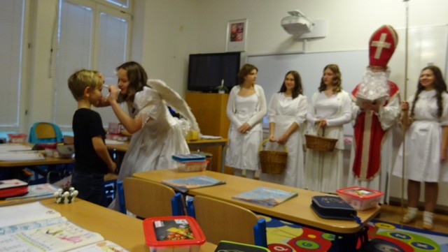 Dnes nás navštívil Mikuláš se svou družinou. Všechny děti si zasloužily malou odměnu. Někteří se trošku báli, ale všechno dobře dopadlo. My se čertů nebojíme, společně se ubráníme..