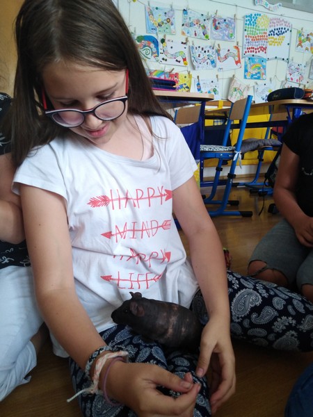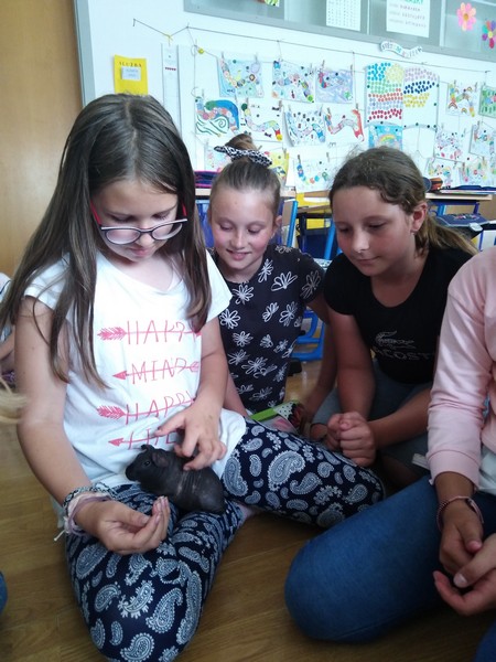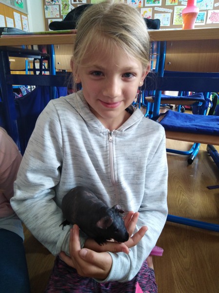Třeťáky dnes navštívil ve škole Štěpán. Nenechte se mýlit, nejde o žádného kamaráda ani o nového spolužáka. Štěpán je totiž skinny morče, ideální domácí mazlíček pro alergiky. Je totiž zcela bez srsti. Michalka ho dostala k narozeninám a stará se o něj už půl roku. Povyprávěla nám, jak o něj pečuje a čím ho krmí. Morčátka jsou háklivá na přehnané tahání a násilné mazlení. Návštěva se nám moc líbila a leckdo z nás by rád měl takové roztomilé zvířátko doma.