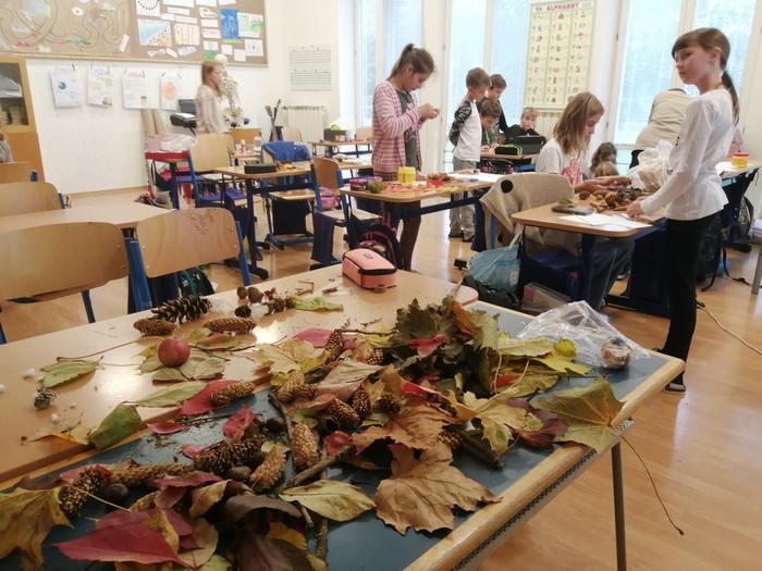 V rámci pracovních činností jsme tvořili podzimní dekorace z přírodních materiálů. Inspirace jsme hledali na webových stránkách a také jsme použili vlastní nápady.