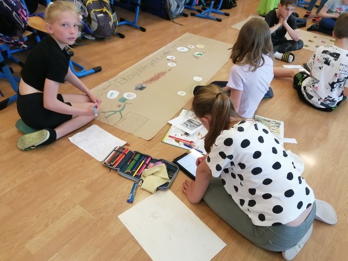Pět skupin žáků pracovala na projektu Ekosystémy. Každá skupina si vylosovala ekosystém a měla za úkol vytvořit naučnou tabuli v českém i anglickém jazyce. Naučné tabule obsahovaly kreslené obrázky i nalepené tištěné obrázky živočichů a rostlin, zajímavosti a informace, které žáci vyhledávali z učebnice a z webových stránek pomocí Ipadu. Součástí projektu byla i elektronická prezentace v PowerPointu. Zde je ukázka z práce skupin na projektu.