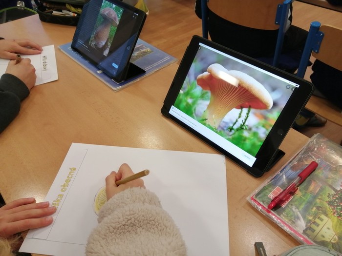 V rámci přírodovědy jsme tvořili atlas hub. Každý žák si vylosoval jednu houbu. Pomocí Ipadu jsme houby zkoumali, kreslili obrázky, vyhledávali, třídili a zapisovali informace z webových stránek.
