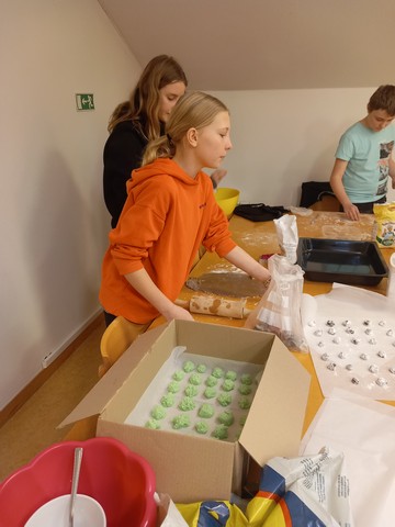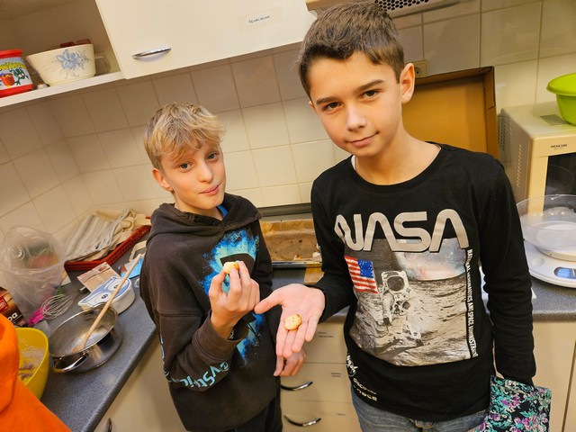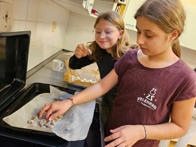 Ve čtvrtek jsme se pustili do pečení vánočního cukroví. Žáci si sami vybrali, co chtějí péct, sehnali si recept a ingredience a pečení mohlo začít! Spolupracovali skvěle a napekli několik druhů cukroví, které si společně dáme příští týden v rámci vánočních třídnických hodin. Už se na to moc těšíme! Holky nám pečení zpříjemnili také speciálními zelenými palačinkami :-) Děkujeme!