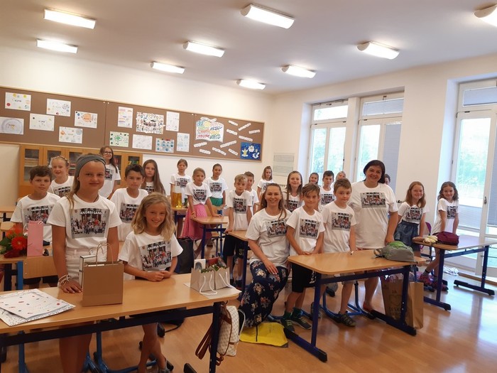 Třeťáci opět mile překvapili a poslední den školního roku vstoupila paní učitelka do třídy plné dětí v úžasném stejnokroji. Jim i jejich rodličům patří velké díky. Krásné prázdniny!