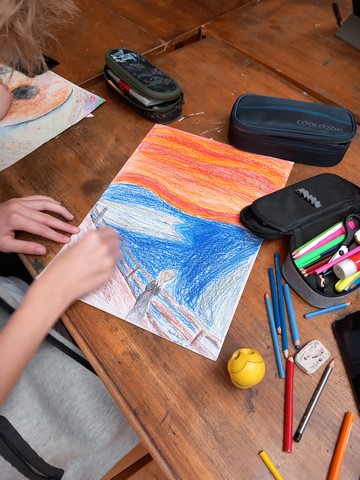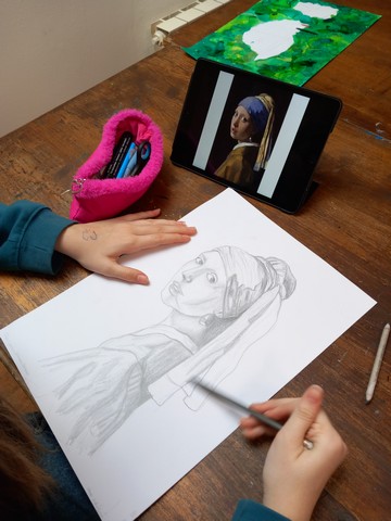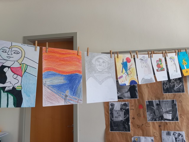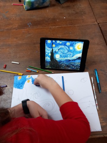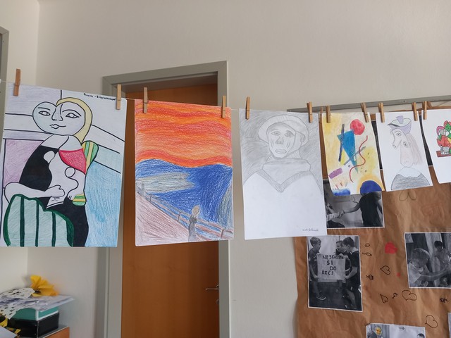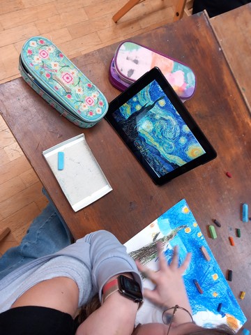 Žáci 6. třídy v rámci výtvarné výchovy reprodukovali díla známých malířů.