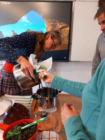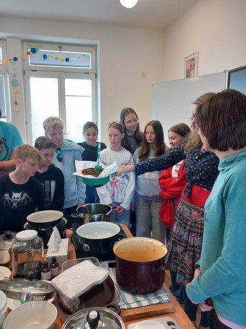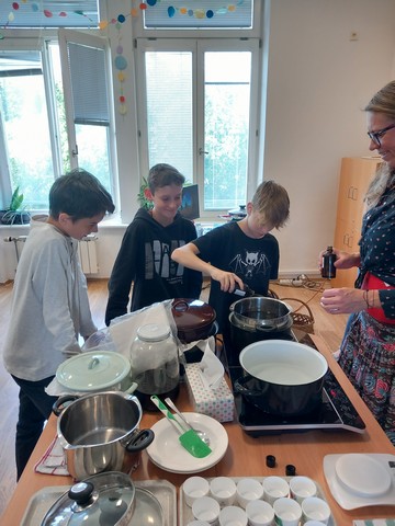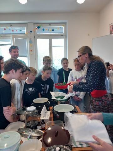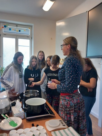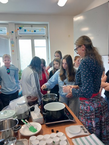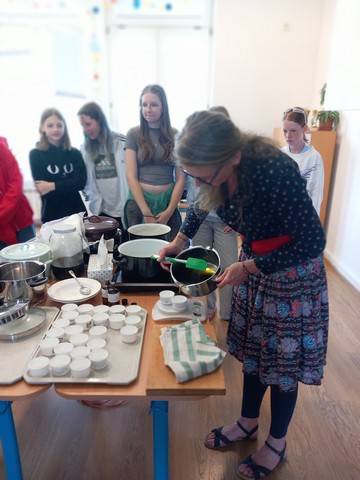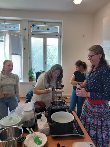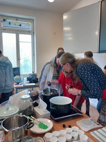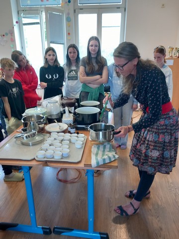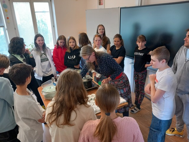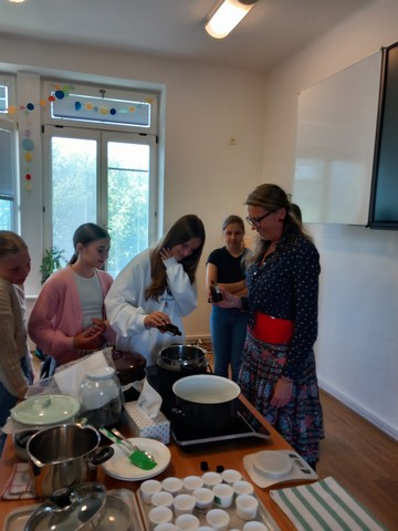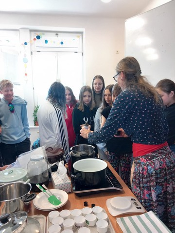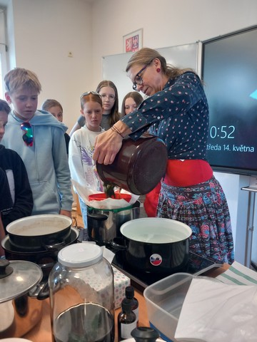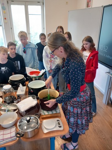 V květnu nás navštívila paní Pelikánová, díky které mohl proběhnout workshop na výrobu mastí. Žáci si sami nasbírali bylinky a poté si za pomoci paní Pelikánové každý – včetně našich kolegů ze Španělska – vyrobil vlastní mastičku. Paní Pelikánové moc děkujeme za velmi podnětnou a zajímavou výuku!