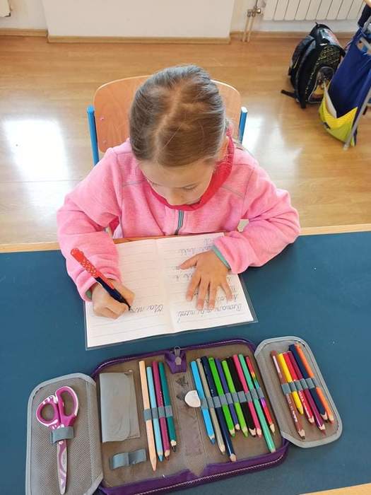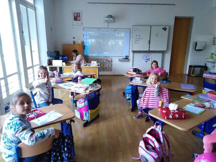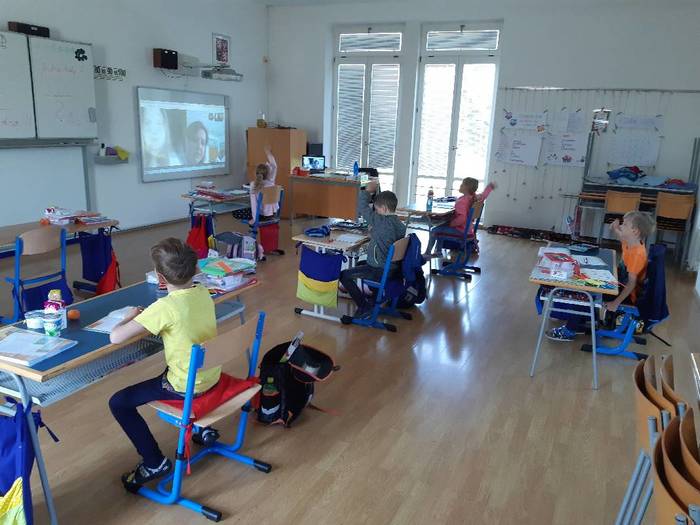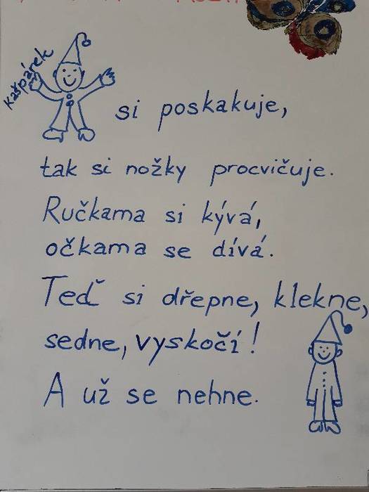 V posledním květnovém týdnu jsme se opět s některými dětmi sešli ve škole. Seznámili jsme se s dalším písmenkem. Začali jsme počítat do dvaceti. Naučili jsme se novou pohybovou básničku. Děti si vyzkoušely pantomimu na téma roční období a namalovaly krásné podzimní skřítky, letní víly a zimní královny. S dětmi, které se i nadále učí doma, jsme se spojili přes Skype.