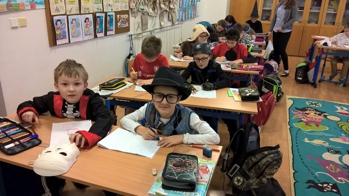 21.2.probíhala výuka trochu netradičně. Děti byly v maskách, protože nás čekal karneval v tělocvičně. Masky se dětem podařily a za rytmu taneční melodie plnily na jednotlivých stanovištích úkoly, které si pro ně připravily děti z 8. ročníku.