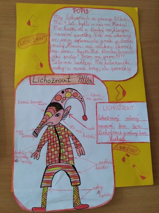 Přečetli si a z audionahrávky poslechli, jak tyto bytosti vypadají a co dokážou. Uvědomili si, že všichni mají doma svého lichožrouta a nakreslili si jej. V hodinách slohu se poté pokusili o popis jejich zevnějšku.