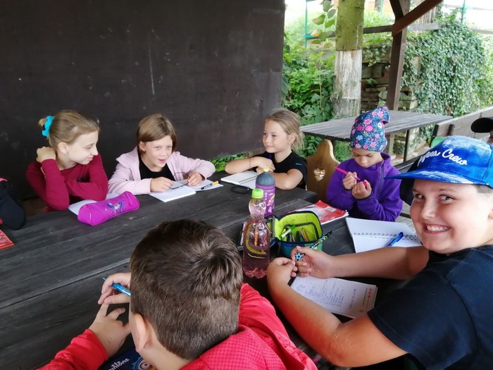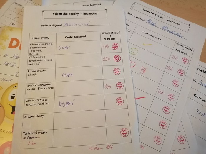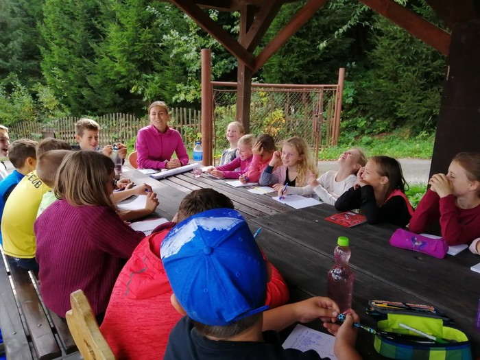 Ve dnech od 22. 9 do 25. 9. 2020 jsme prožili 4 dny na adaptačním pobytu v Agropenzionu Vápenice. Cílem pobytu bylo nejen utužení kamarádských vztahů mezi spolužáky a seznámení se s novým třídním učitelem a paní asistentkou, ale i pobyt na čerstvém vzduchu v přírodě a spousta her a soutěží. Splnili jsme si všechny Vápenické stezky, které byly zaměřeny na znalosti z prvouky, matematiky, přírodovědy a angličtiny, na orientaci v přírodě, luštění tajenek a fyzickou zdatnost. Zajímavá byla Runová stezka Vikingů, ve které jsme v lese hledali stanoviště, na kterých jsme opisovali runy a pak luštili tajenku. Po vyluštění tajenky, což byl vápenický poklad, nás čekala sladká odměna. Adrenalinová byla Lanová stezka se zavázanýma očima a stezka odvahy, kterou pro nás připravili sedmáci. Za každou splněnou stezku jsme od pana učitele získali smajlíka a u některých stezek bodové hodnocení. Na závěr pobytu pak byli vyhodnocení žáci, kteří dostali nejvíce bodů a splnili všechny stezky. Bavili nás také kolektivní hry na louce, tančení při muzice a ušli jsme 7km na Vyškovec a ke sjezdovce Lopata. Někteří žáci se přihlásili do umělecké soutěže Vápenický talent. Soutěžilo se ve hře na housle, flétny, zazněla i recitace, zpěv, obdivovali jsme krásný balet a moderní tance. Holky ze sedmé třídy naše výkony hodnotily a ostatní žáci nás povzbuzovali potleskem. Také jsme si zazpívali pěkné písničky s doprovodem na kytaru. Navštívila nás i naše paní psycholožka, se kterou jsme si zopakovali pravidla chování a ta nejdůležitější jsme si zapsali do nakresleného stromu. K tomu všemu pěkné počasí, hezké ubytování a dobrá nálada. Skvěle jsme si to užili, budeme vzpomínat.