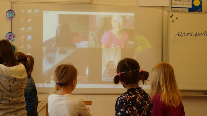 V úterním dopoledni jsme se spojili se spolužáky přes aplikaci Skype. Sice to byl velký zážitek, ale bylo trochu moc různého hrčení a chrčení, takže to s mluvením bylo trochu zapeklité. Děti ve škole se dost styděly, ty doma byly úpně v pohodě (alespoň podle monitoru).