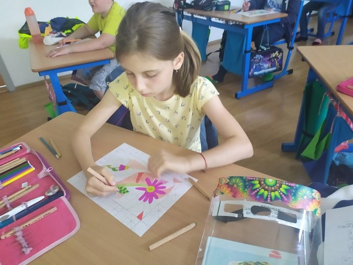V poslední části dopoledne někteří dokončovali vitráže, ostatní se pustili do "barevného počítání".