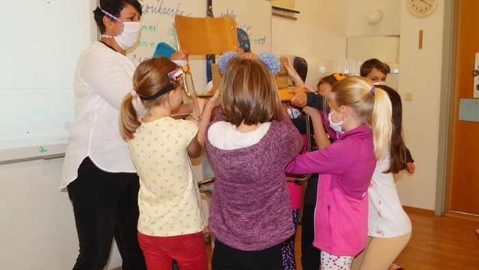 Kluci u oběda nás obšťastnili perfektní "telefonistickou písničkou", do které zapojili úplně všechny z naší třídy a také ještě někoho navíc.