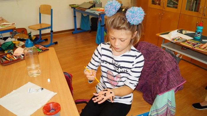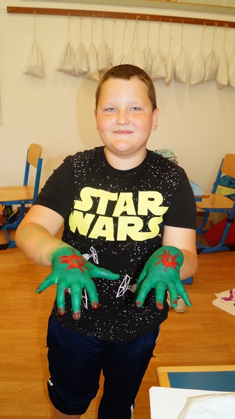 Také nás čekala poslední část projektu - otisk nohy a ruky. Byla to velká zábava....