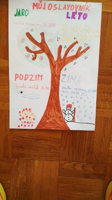 Nejdříve jsem si narýsovala tabulku podle měsíců. Do měsíců jsem si zapisovala narozeniny a svátky. Narozeniny jsem označila růžově a svátky modře.