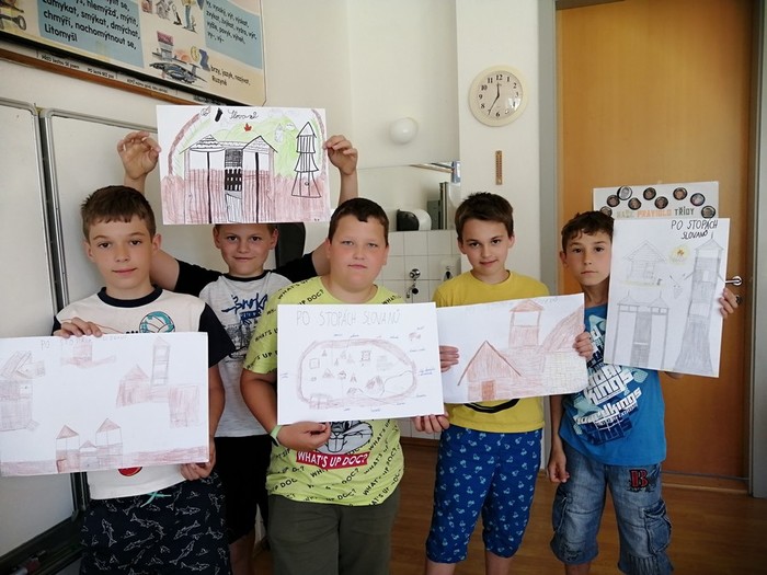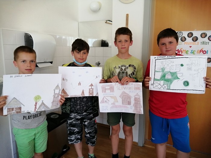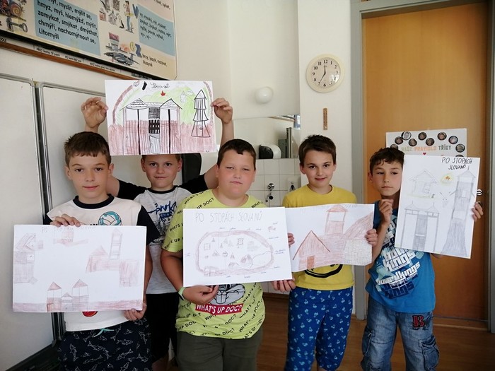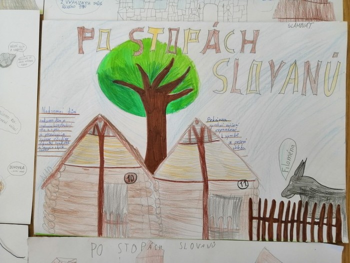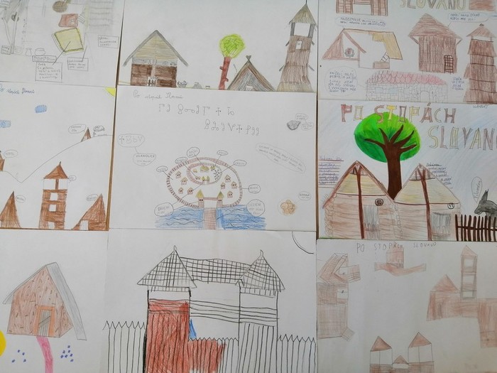 Součástí našeho třídního projektu Po stopách Slovanů byly i výtvarné práce. Žáci ztvárnili slovanské opevněné hradiště, popsali jednotlivé příbytky a zapsali další informace. V Archeoskanzenu si vše zdokumentovali a z fotek vytvořili prezentace v PowerPointu. Každý žák pak předvedl svoji prezentaci.