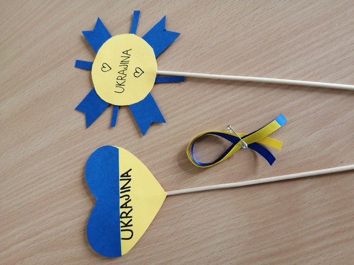 V rámci pracovních činností jsme vyráběli vlaječky, srdíčka, sluníčka a trikolóry v barvách válkou pustošené Ukrajiny a vybrali peníze na pomoc ukrajinskému lidu.