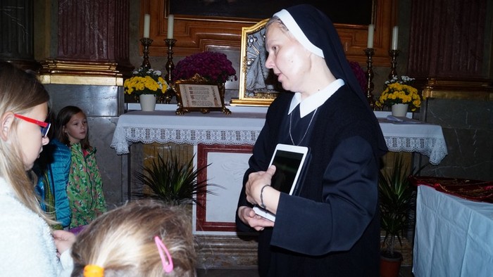 Sestřičky nám v bazilice povyprávěly jeho příběh a vysvětlily i jeho symboliku. Také nám ukázaly jeho bohatou garderóbu. Šatičky má pro každou příležitost.