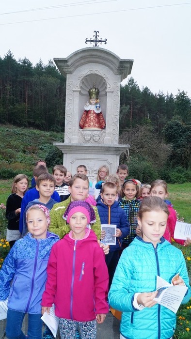 Pak nás kluci ještě zavedli k druhému Jezulátku - poutnímu zastavení z roku 2007. Oběma Jezulátkům jsme zazpívali latinsky.