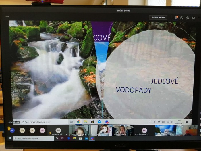 Učíme se také tvořit prezentace v PowerPointu. Pan učitel nám ukazuje jak na to. Sdílí postup vytváření prezentace a my to pak zkoušíme. Už se mnohým z nás podařilo první prezentace vyrobit a ukázat je pomocí sdílení plochy obrazovky ostatním žákům. Naše první prezentace se týkaly naší vlasti, přírodních krás, zajímavých míst, řek a pohoří, skalních útvarů a chráněných oblastí.
