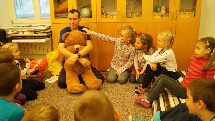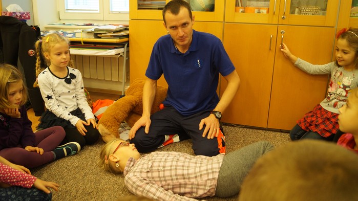 V pátek 24.11. se prvňáčci dozvěděli spoustu zajímavých věcí. Jak správně zavolat záchrannou službu, jak ošetřit kamarádovi poraněnou ruku, co dělat, když má kamarád ruku zlomenou popálenou a jak se zachovat, když najdeme někoho v bezvědomí.