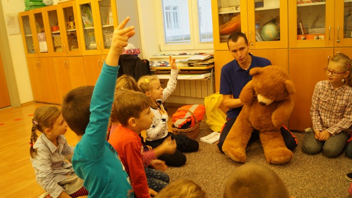 Dětem pomáhal velký medvěd, kterému společně s panem záchranářem ošetřili poraněnou tlapku.