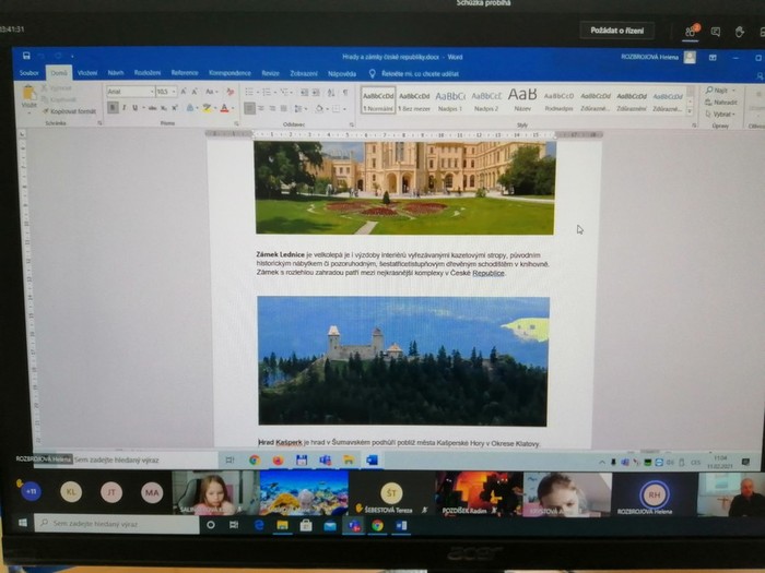 Učíme se vytvářet referáty v aplikaci Word, stáhnout obrázek z webu, vložit do Wordu, upravit, napsat nějakou zajímavost, najít informace na webu, zkopírovat do Wordu, upravit text, sdílet hotovou práci pro ostatní žáky, poslat úkol panu učiteli mailem - to vše a ještě víc se učíme v distanční výuce. Spojili jsme učivo přírodovědy a vlastivědy s informatikou a to nás baví.