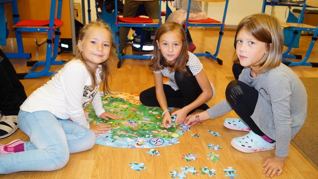 V prvouce jsme pracovali ve skupinkách a společně jsme studovali a zpracovávali informace o našich státních symbolech. Helenka ještě přinesla puzzle, na kterém je Česká republika, tak si užíváme skládání.