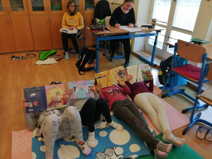 Žáci si do školy nosí své rozečtené knihy, které si ve čtenářské dílně čtou. Najdou si ve třídě příjemné místo na dece nebo karimatce a část hodiny si v tichosti čtou. Pak následuje povídání o tom, co si přečetli. Své zážitky z četby sdělují spolužákům a učiteli. Odpovídají na různé otázky týkající se četby - hlavní hrdina, povahové vlastnosti, prostředí, veselé a smutné zážitky, zařazení do žánru, napínavé, dobrodružné scény atd. Po přečtení knihy žáci vypracují literární list, který učiteli a spolužákům představí. Za každý literární list získají známku a sovičku. Žáci během školního roku budou sbírat sovičky za přečtené knihy a na konci roku vyhodnotíme nejlepší čtenáře.