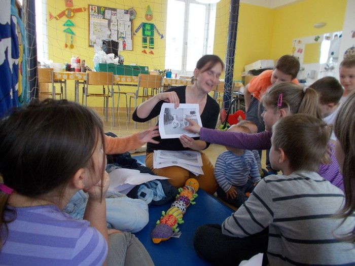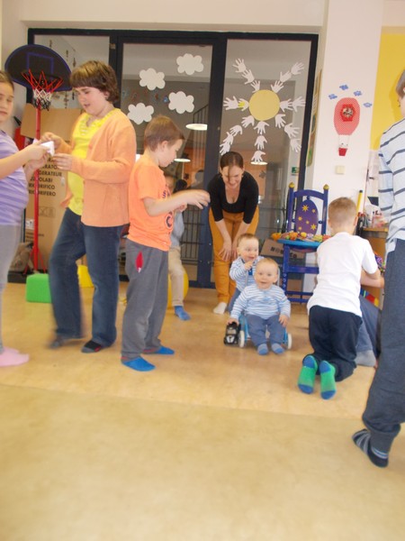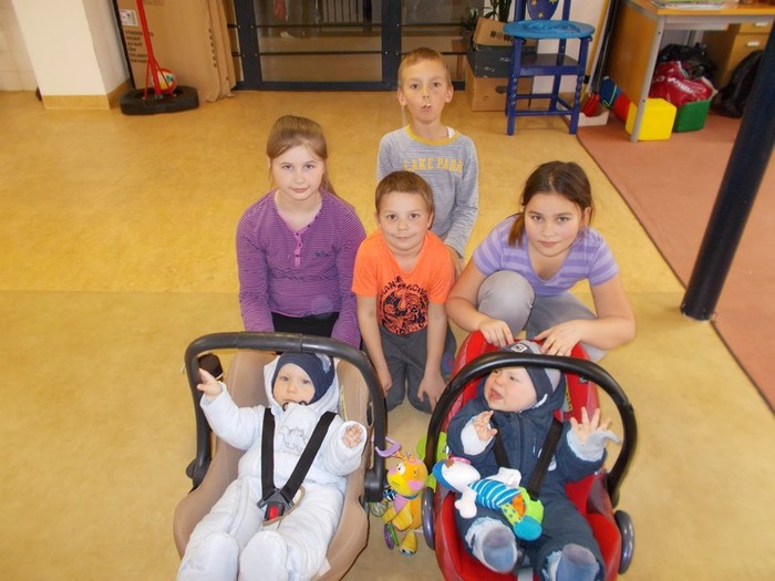 Vznikl nápad něco se o miminkách dozvědět. Pozvání do školní družiny přijala paní Slavíková se svými ročními dvojčátky Edíkem a Vilémkem. Ve své krátké besedě dětem vyprávěla o vývoji dvojčátek, o radostech i starostech při jejich výchově. Přinesla ukázat fotky, kde všichni viděli, jak kluci rostou. Dvojčátka předvedla dětem ze školní družiny svoje speciální hračky, ale stejně se jim nejvíce líbila družinová auta.
