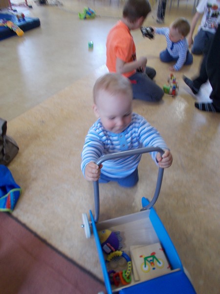 *jak nám Edík ukázal svoje první krůčky pomocí chodícího vozíčku /Saša/