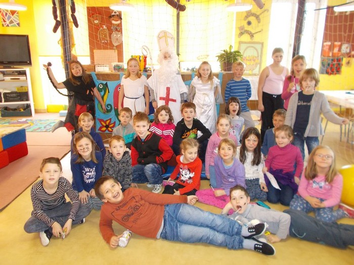 Jako každoročně zavítal do školní družiny "dětský" Mikuláš s doprovodem. Ve své knize měl všechno správně napsané - kdo je na co moc šikovný, ale také kdo občas nebo i často dělá neplechu. Potom byly všechny děti po zásluze odměněny. Největší provinilci museli v čertovském pytli obskákat celou družinu a slíbit, že se polepší. Na závěr si mohly děti od anděla nebo čerta nechat namalovat na obličej obrázek.