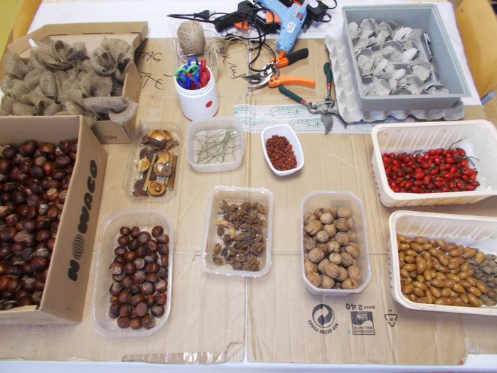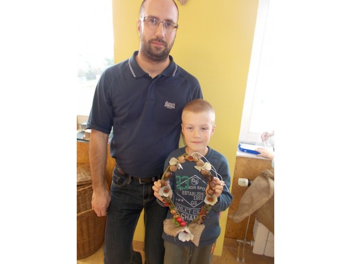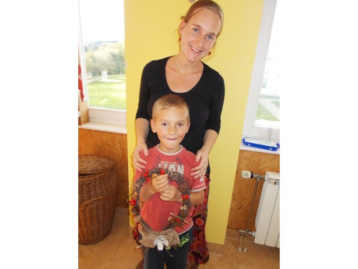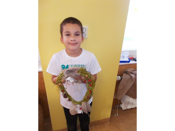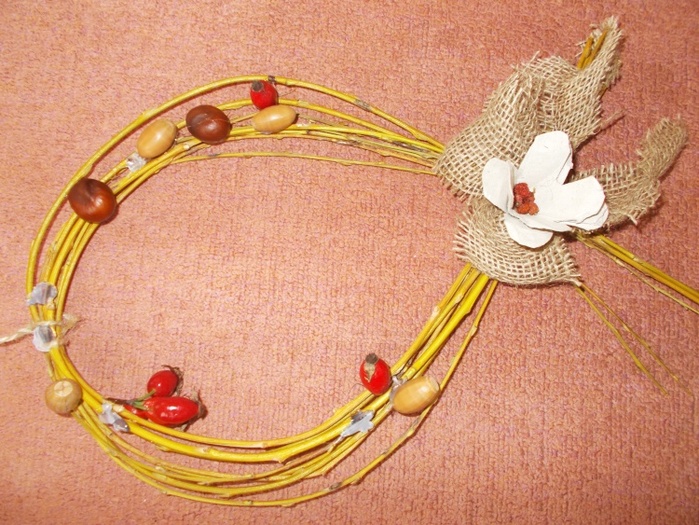 CO SE TVOŘILO VE ŠKOLNÍ DRUŽINĚ...? TO SE VEZME PÁR VRBOVÝCH NEBO BŘEZOVÝCH VĚTVÍ. TY SE PAK STOČÍ, VYTVARUJÍ A VZNIKNE VĚNEČEK. TEN SE DOZDOBÍ PODZIMNÍMI DARY PŘÍRODY - KAŠTANY, ŽALUDY, BUKVICEMI, ŠÍPKY, JEŘABINAMI, BAREVNÝMI LISTY A JE HOTOVO.