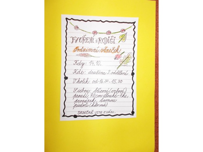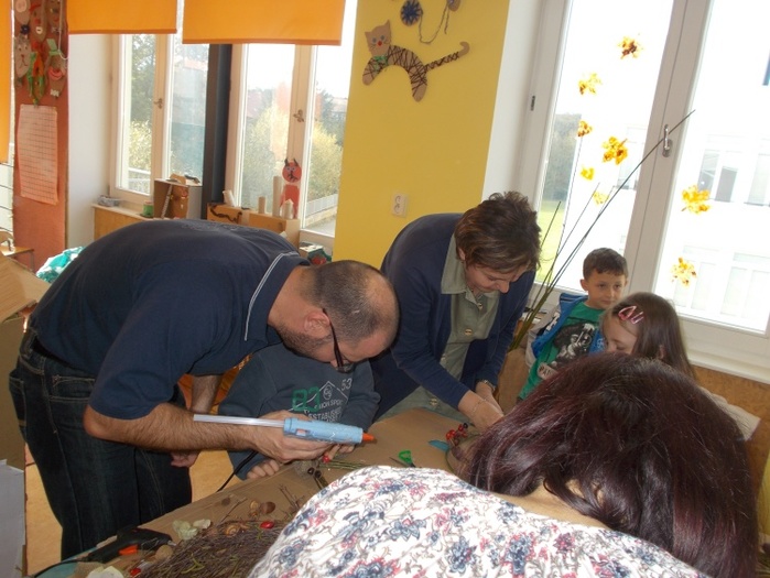 NA POMOC DĚTEM PŘI JEJICH TVOŘENÍ PŘIŠLI DO DRUŽINY RODIČE, BABIČKA I SESTRA. VELMI ZRUČNÍ BYLI DVA TATÍNCI. VELKÉ DÍKY PATŘÍ A. LUKÁŠOVÉ, L. VAŇKOVÉ A DĚVČATŮM DAŇKOVÝM, KTERÁ VE SVÉM VOLNÉM ČASE PŘI AKCI ASISTOVALA. VŠICHNI JISTĚ STRÁVILI PŘÍJEMNÉ ODPOLEDNE A SPOKOJENĚ SI ODNÁŠELI VLASTNORUČNĚ VYROBENÉ DEKORACE DOMŮ, ABY S NIMI VYZDOBILI SVÉ PŘÍBYTKY.