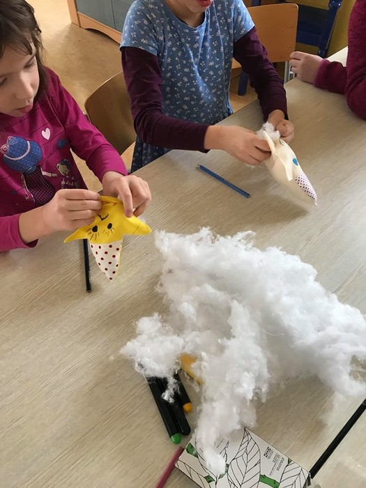 Děti si ve školní družině vyrobily látkové hvězdičky. Byly velmi šikovné a práce je bavila.