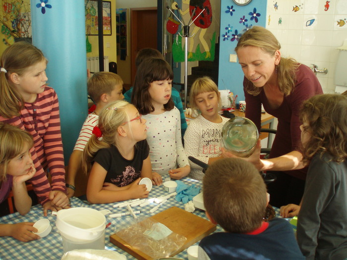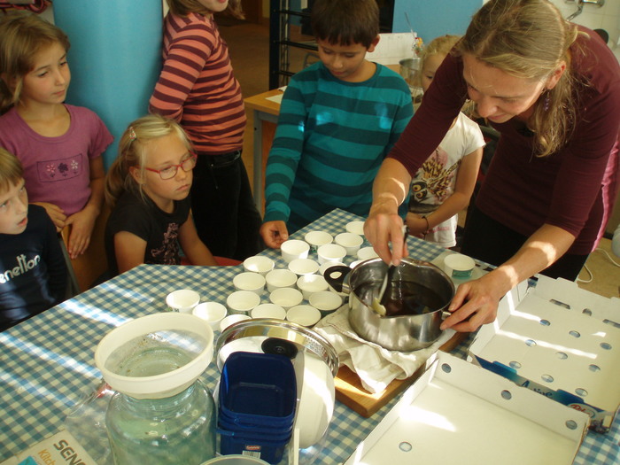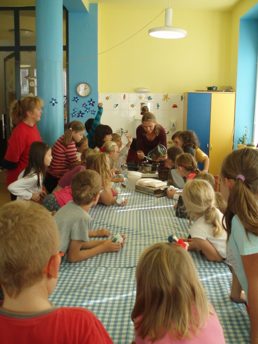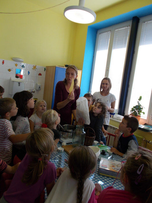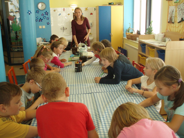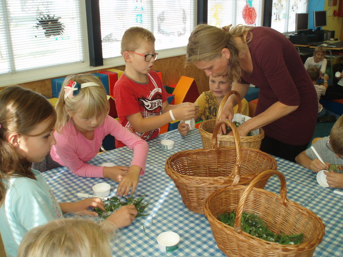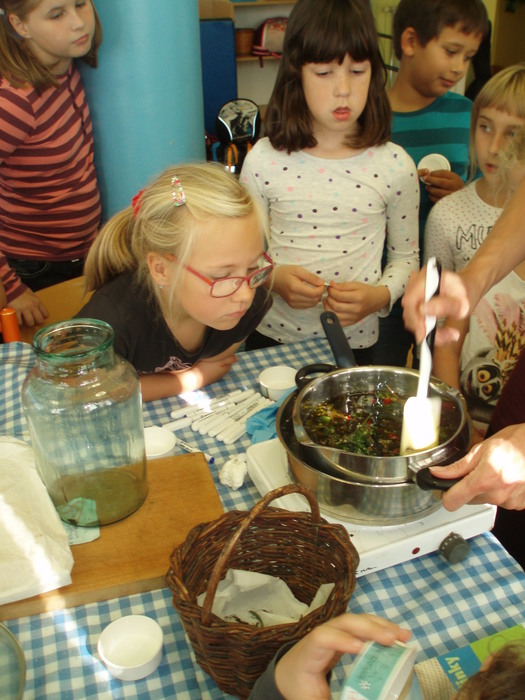 Dne 29. 9. 2016 jsme si do školní družiny pozvali paní Pavlínku Pelikánovou, která nám povyprávěla užitečné věci o bylinkách a o samotném tvoření mastičky. My (obě oddělení školní družiny s paní Pavlínkou) jsme vyráběli léčivou mastičku, na kterou jsme si byli nasbírat potřebné bylinky a to květy řebříčku, listy jitrocele, sedmikrásky a plody šípku. Základ masti byl z macerátu bylin do kterého jsme po té přidávali rozpuštěný včelí vosk. Ještě tekutou mast jsme nalévali do kelímků. Každé z dětí si vytvořily vlastní etiketu.