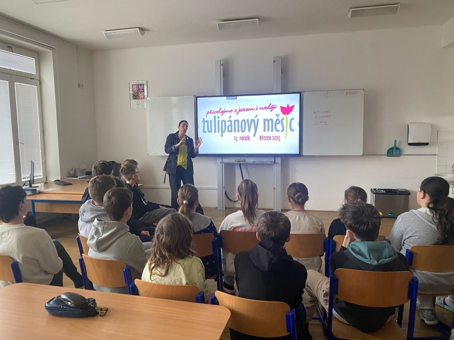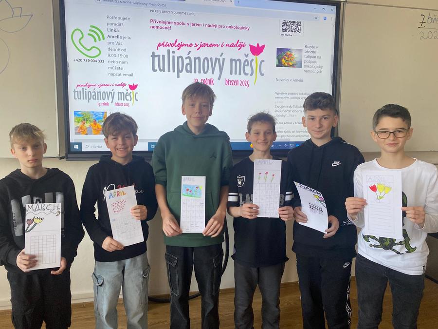 Tulipánový měsíc. Aktivita, při které jsme seznámili nejen žáky školy, ale I širokou veřejnost s mezinárodním projketem Kompas aktivního občanství ACC Erasmus+. Díky Kompasu jsme ve škole připravili několik aktivit a začali jsme spolupracovat s neziskovou organizací Amélie. Koordinátorka pro náš region paní Monika Čuda se seznmila s našimi aktivitami v rámci Kompasu aktivního občanství a společně jsme se dohodli na spolupráci. Zavítala k nám do školy, představila neziskovku a seznámila žáky s aktivitami této neziskovky. Žáci školy při výuce angličtiny spojili výuku s aktivním občanstvím a praktickými dovednostmi, jak být prospěšný nejen v našem regionu, zemi, ale I Evropě. Téma pomoci nemocným lidem s rakovinou, což je hlavní náplní neziskovky Amélie, jsme tedy přenesli do školního prostředí a díky Kompasu aktivního občanství jsme připravili tulipány, přání a kalenáře pro pacienty, které nyní zdobí ongologické oddělení nemocnic našeho regionu. Učíme tak naše žáky být platnými, tolerantními lidmi, kteří umí pomáhat druhým.