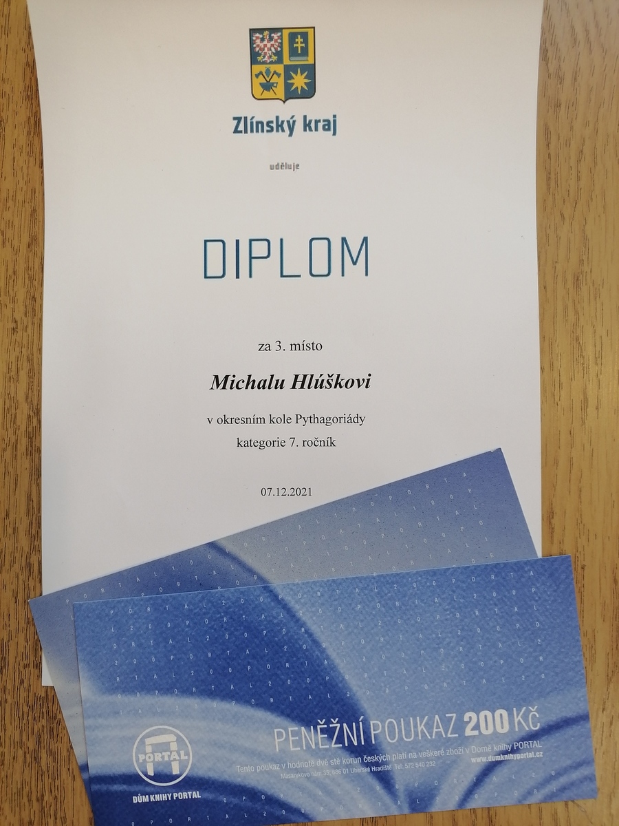 Jak jsme již informovali, velkého úspěchu dosáhl Michal Hlúšek (7. třída) v okresním kole matematické soutěže Pythagoriáda, kde se umístil na krásném 3. místě.