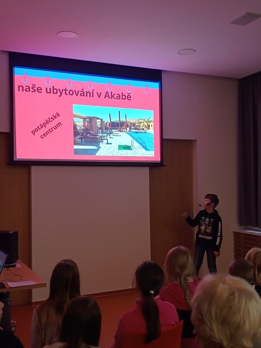 Po předchozích úspěšných ročnících jsme i letos ve spolupráci s velehradskou knihovnou uspořádali další Cestovatelský večer. Svoje cestovatelské zážitky z Česka i zahraničí tentokrát prezentovalo 13 žáků ze 3. až 5. třídy. Poslechnout jsme si mohli povídání o českých horách (zejména o Šumavě, Beskydech a Krušných horách), ale vydali jsme se i na hory za hranice a to do Vysokých Tater a italských Alp. Pomyslné ohřátí a slunce jsme načerpali z fotek a vyprávění o Jordánsku, Španělsku, Maltě, Chorvatsku nebo Korsice. Hosté si velmi chválili vysokou úroveň ústních projevů, stejně jako velmi kvalitně a zajímavě zpracovaných prezentací. Naši žáci se prezentace učí zpracovávat ve škole už od 4. třídy.