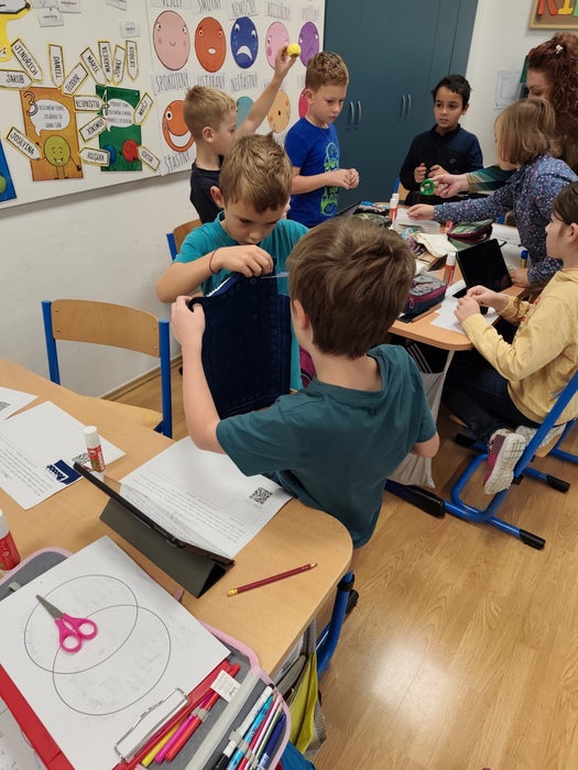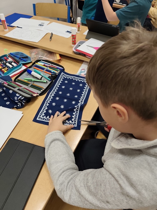 Ani žáci 1. stupně nezůstali pozadu. Ti se během dne seznámili s portugalským ostrovem Madeira a stejnojmennou bílou látkou s výšivkou, objevili při tvorbě animovaného filmu krásu českého modrotisku, který je součástí nehmotného kulturního dědictví UNESCO, a inspirovali se slovenskými Čičmany, jejichž lidové ornamenty přenesli do vlastní tvorby domečků. Tím rozvíjeli vztah ke kulturním kořenům Evropy i vlastní tvořivost.