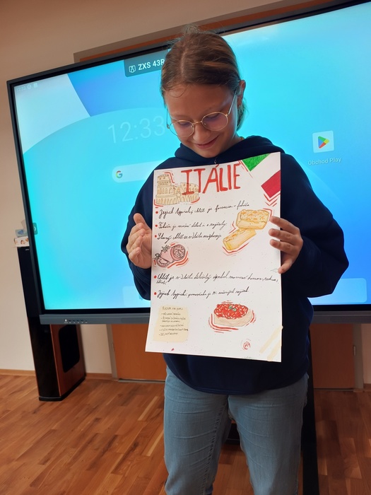 Žáci 2. stupně si připravili prezentace o vybraných zemích – Česku, Slovensku, Itálii a Maďarsku. Zjišťovali nejen zajímavosti o daném státě, ale především typické pokrmy, suroviny a tradice. Své práce představili spolužákům a doplnili je ručně tvořenými plakáty a digitálními prezentacemi.