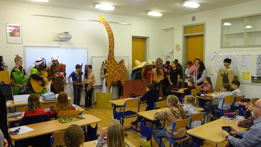 V pátek ráno za zpěvu písniček o Africe dorazila do školy na Velehrad delegace 19 „Afričanů“. Výpravu přivedli známí čeští cestovatelé v čele s Emilem Holubem. Delegaci také tvořili zástupci států od Egypta až po Jihoafrickou republiku. Zdejším žákům představili africké zvířata, seznámili je s některými africkými státy a naučili zdejší obyvatelstvo místním pozdravům. Mezi nejnáročnější úkoly cestovatelů patřila přeprava slonů, opic, žirafy, krokodýla, lva, tarbíka a marabu. Na závěr se výprava se všemi rozloučila africkým pozdravem AŠA MODLA.